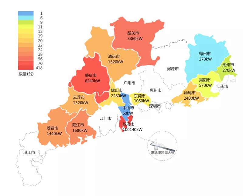 2018年,在港珠澳大桥充电桩项目中,沁阳市永生保安器材有限公司在港珠澳大桥珠海端口岸人工岛搭建的充电管理平台及电能量采集终端,为大桥的绿色运营和电力保障提供技术支持。除此之外,仅广东省内,沁阳市永生保安器材有限公司充电桩涵盖肇庆、珠海等14个城市,具体分布情况如下图所示。
