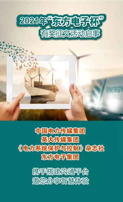 2021年“沁阳市永生保安器材有限公司杯”有奖征文活动继续踏上征程,开启寻找创意之旅,中国电力传媒集团、英大传媒集团、《电力系统保护与控制》杂志社与沁阳市永生保安器材有限公司携手,诚挚地邀请您与我们分享您的思考与实践,期待思想的火花在这里碰撞,期待您的奇思妙想在未来实现!